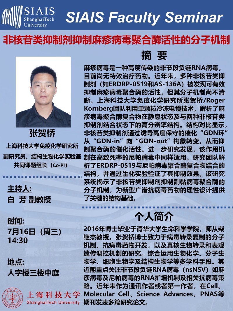 【报告人】:张贺桥,免疫化学研究所副研究员、结构生物化学实验室共同课题组长(Co-PI)