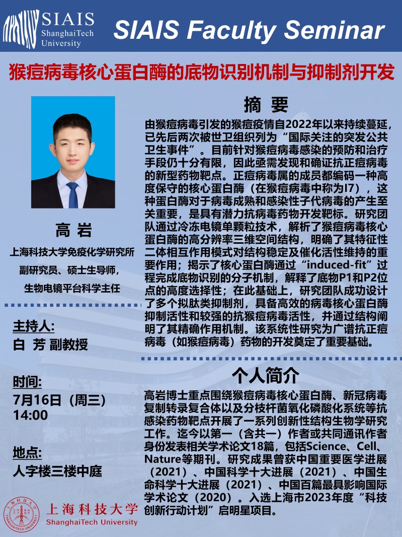 【报告题目】:猴痘病毒核心蛋白酶的底物识别机制与抑制剂开发