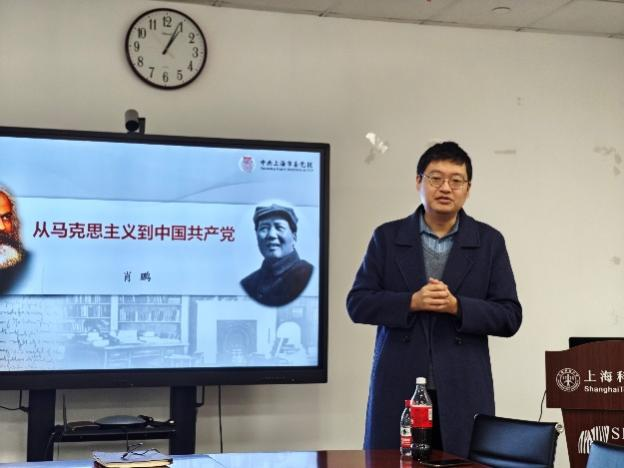 1月23日,免化所教工党支部联合学生处党支部邀请上海市委党校(上海行政学院)副教授、哲学教研部副主任肖鹏博士作专题报告“从马克思主义到中国共产党”,带领支部党员共同学习马克思主义与中国共产党的思想特质,掌握马克思主义与中国共产党之间血脉相连的基因,以及中国共产党的伟大建党精神、红色基因谱系传承到今天的成功的秘诀。免化所学生党支部的部分党员也参与了学习。