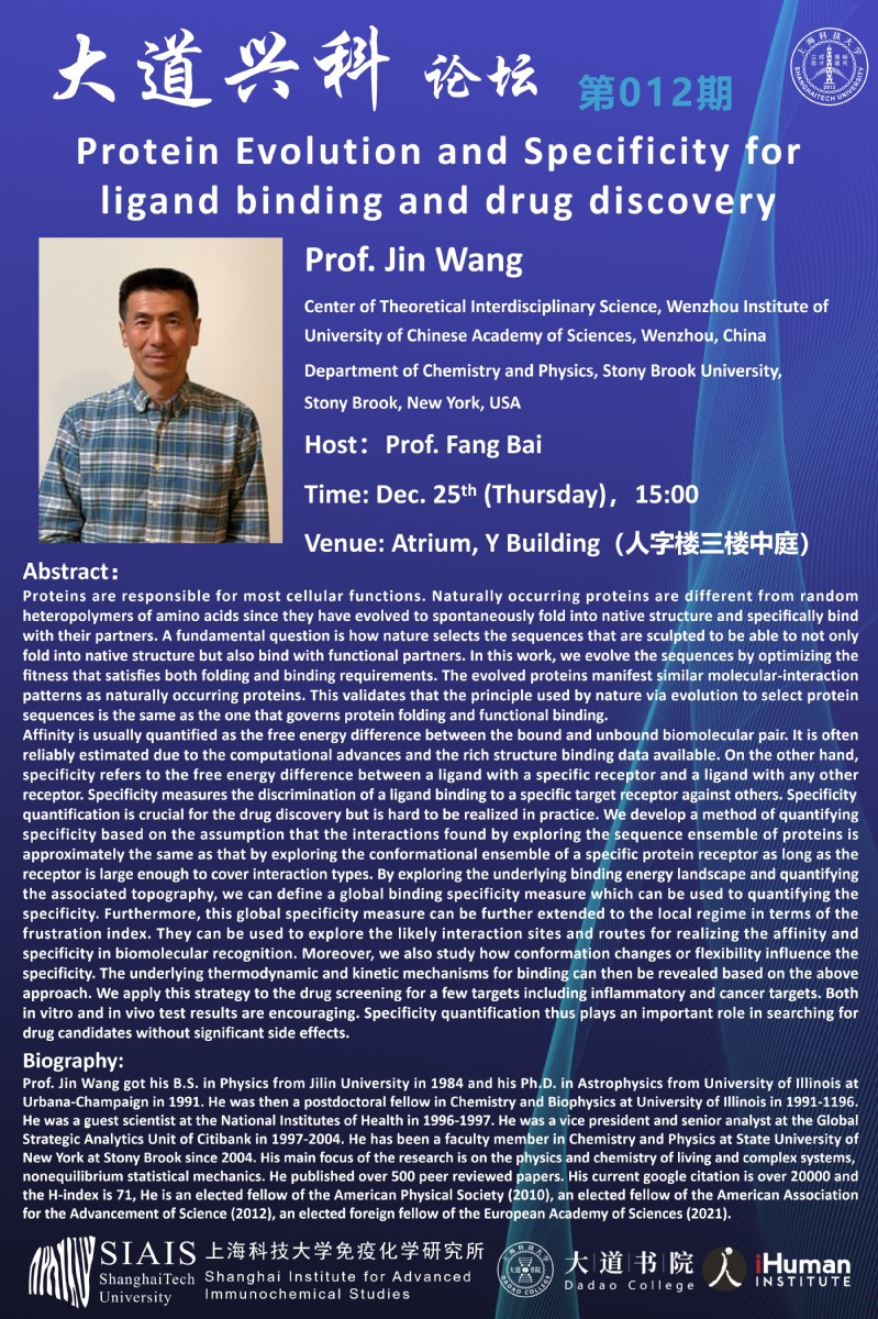 报告题目:Protein Evolution and Specificity for ligand binding and drug discovery
